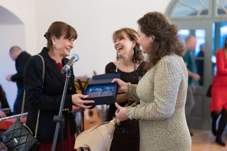 Paní Burešová se sice ze zdravotních důvodů nemohla dostavit, ale namluvila speciálně pro nás gratulaci. Cenu za ni převzala a následně ji osobně předá její dlouholetá přítelkyně Marie Tomsová.