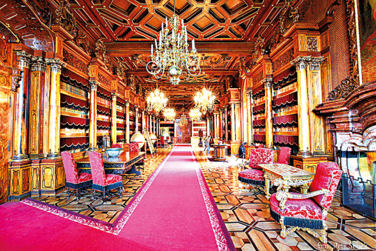 Nádherně zachované interiéry s vyřezávanými stropy, bohatě zdobeným nábytkem a rozsáhlou sbírkou obrazů, zbraní i tapisérií. Prohlídkové trasy vás provedou soukromými apartmány, slavnostními sály i velkou knihovnou. Atmosféra je klidná a elegantní – plná detailů, které potěší oko i duši.