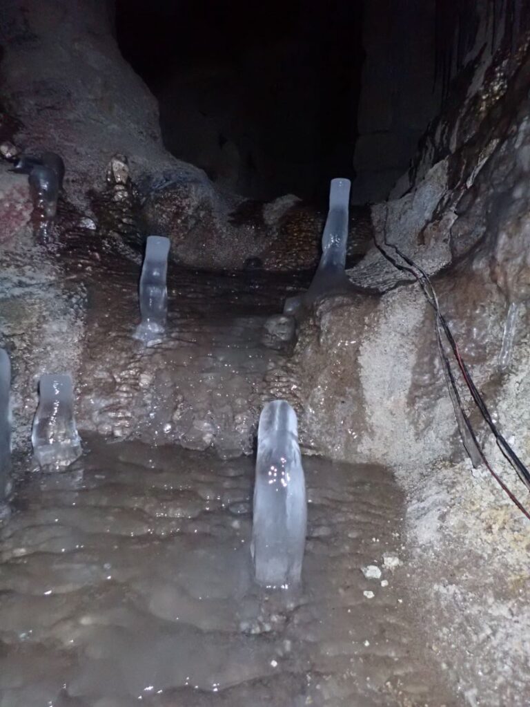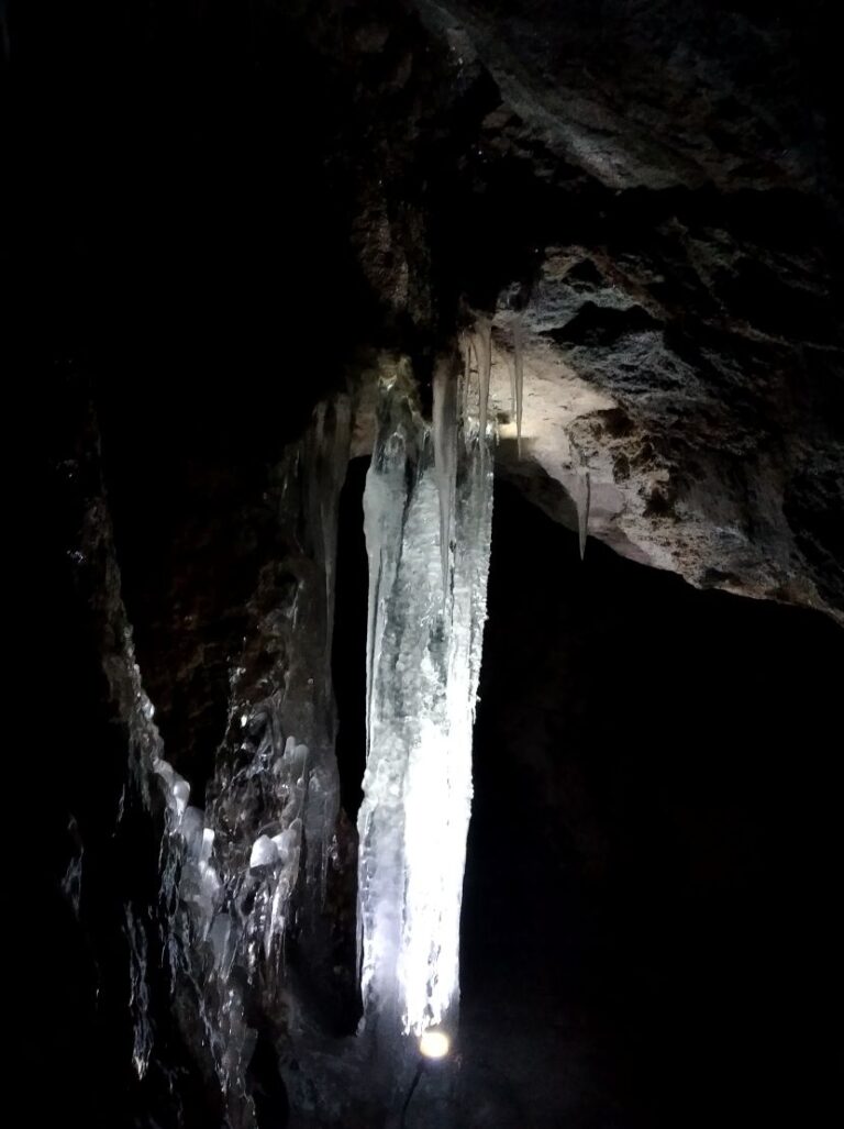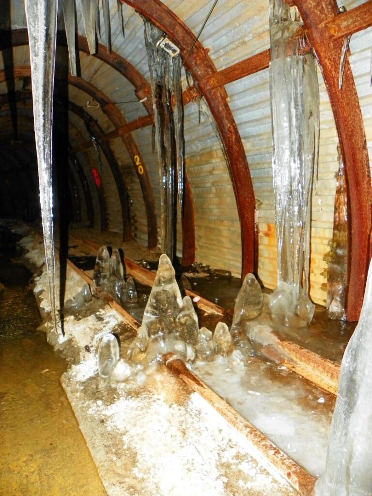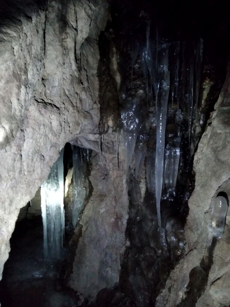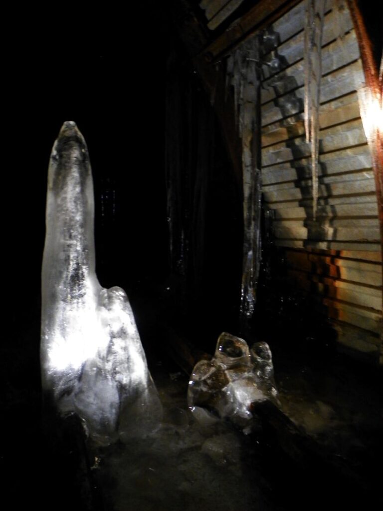 Kombinace proudícího mrazivého vzduchu a pomalu kapající vody zde vytváří fantastické ledové struktury, které proměňují temné chodby v pohádkovou galerii.
