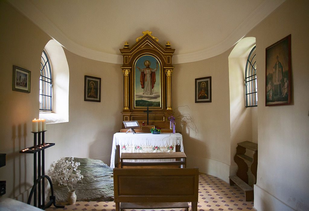 Tento světec, biskup v bavorském Řezně, údajně v nedaleké jeskyni pod skálou přenocoval, když se vracel z Prahy, kde vysvětil prvního českého biskupa Dětmara.